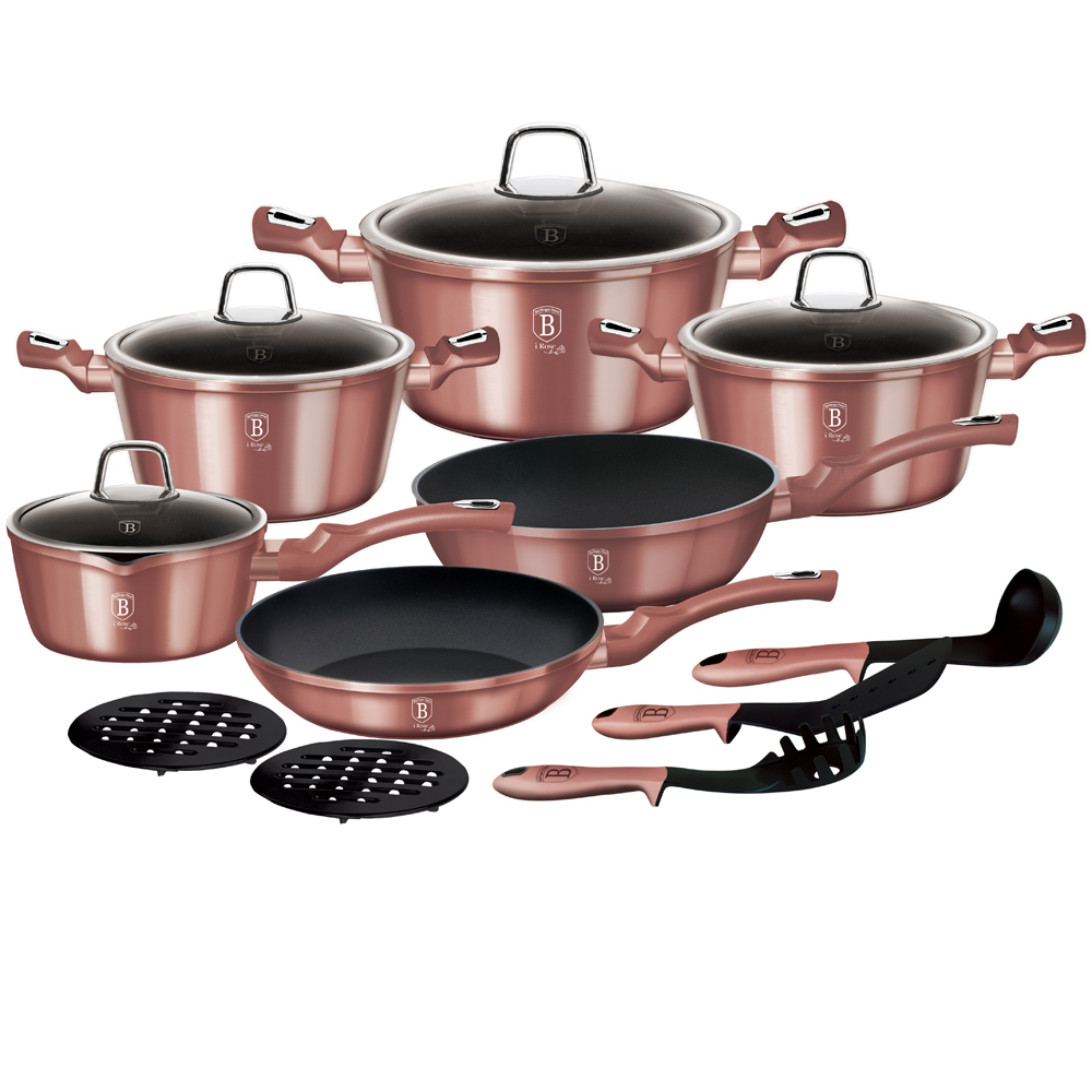 Σετ Μαγειρικών Σκευών με τριπλή επίστρωση τιτανίου Berlinger Haus, iRose Edition, 15 τμχ BH-6045