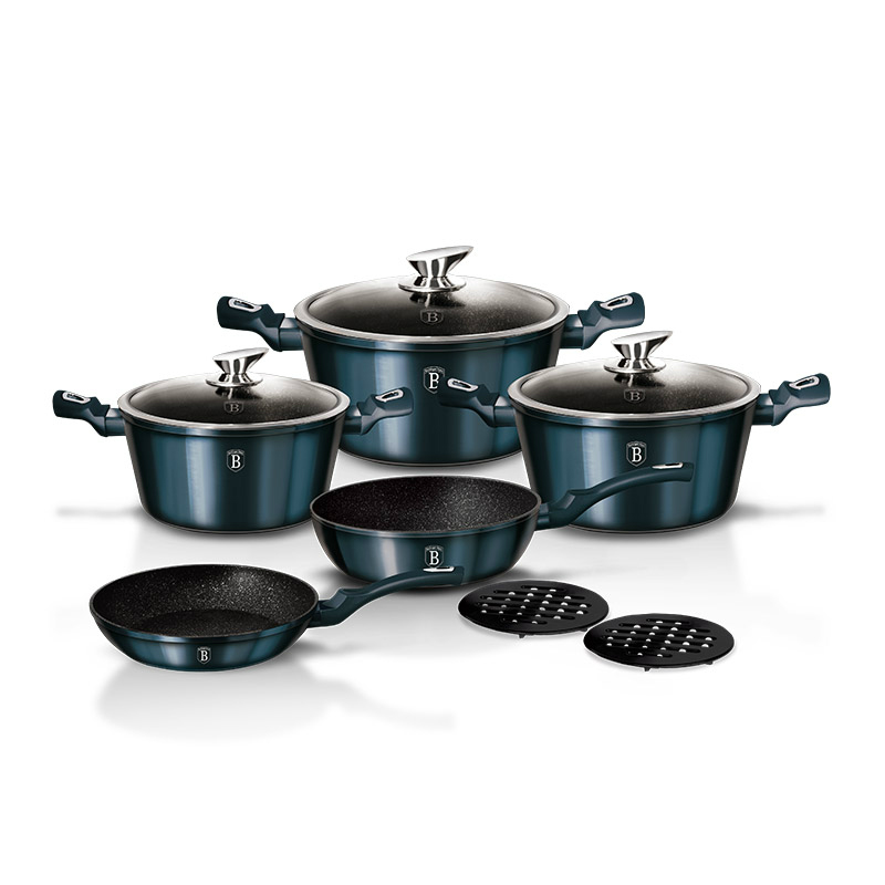 Σετ Μαγειρικών Σκευών με τριπλή μαρμάρινη επίστρωση Berlinger Haus Metallic Line Aquamarine Edition 10 τμχ BH-1884