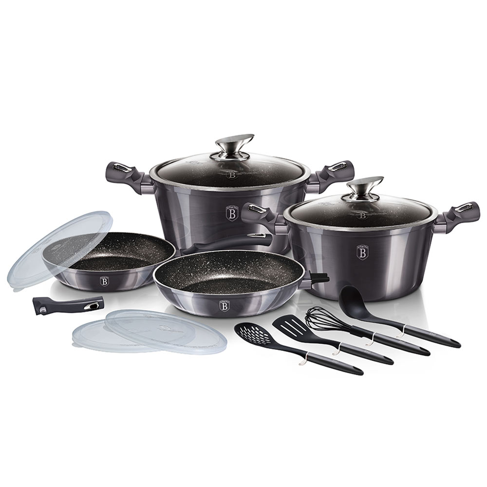 Berlinger Haus Σετ μαγειρικά σκεύη 13 τεμαχίων από σφυρήλατο αλουμίνιο με τριπλή μαρμάρινη επίστρωση Metallic Dark Grey BH-7059