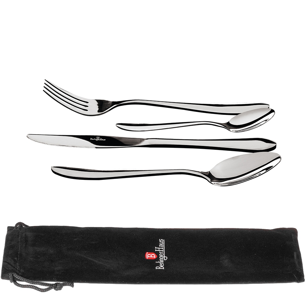 Ατομικό Σετ Μαχαιροπίρουνα 4 τεμαχίων από Ανοξείδωτο Ατσάλι, με πάνινη θήκη μεταφοράς Berlinger Haus BH-2761
