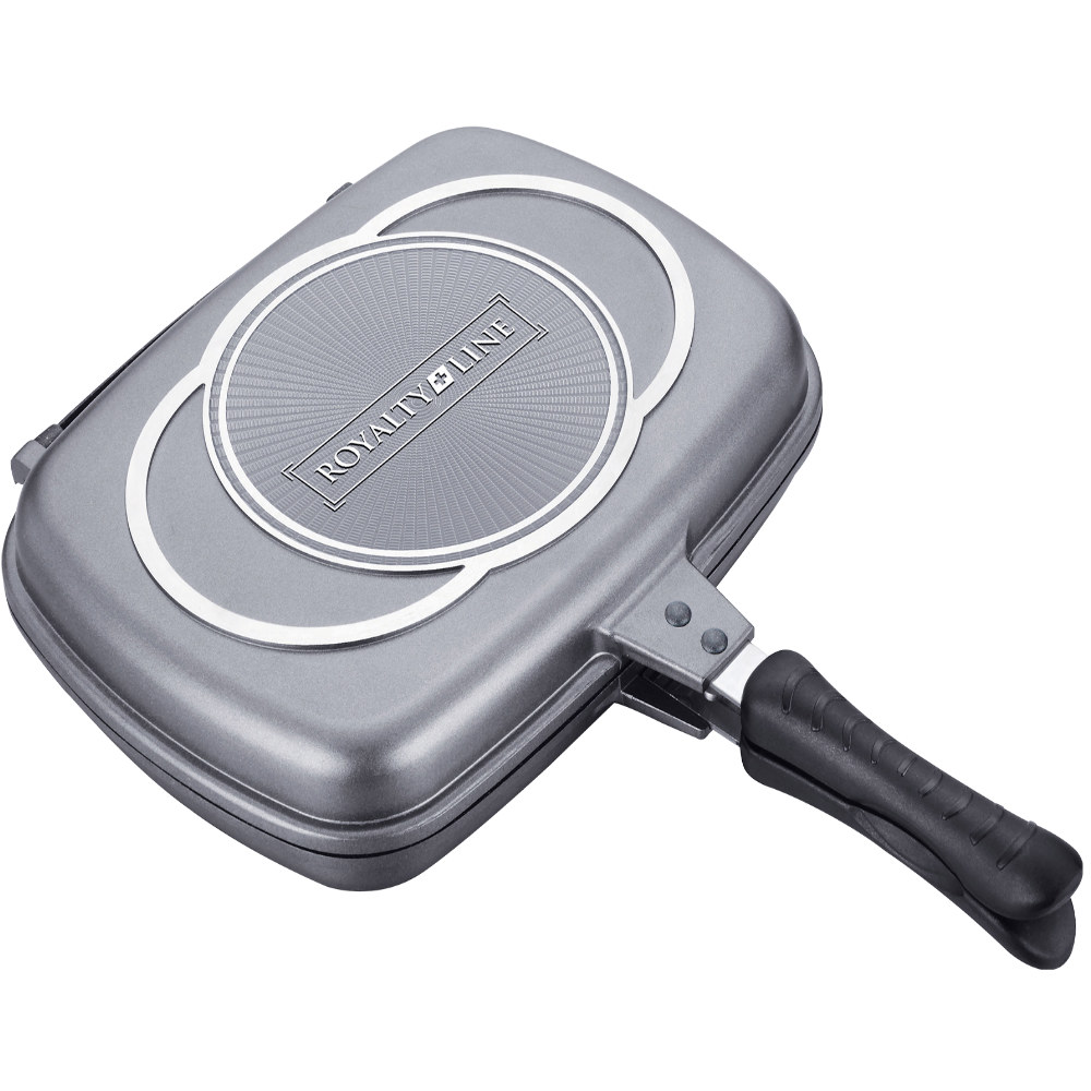 Αντικολλητικό διπλό τηγάνι 34εκ. ασημί χρώμα, Royalty Line RL-DF34M-SIL