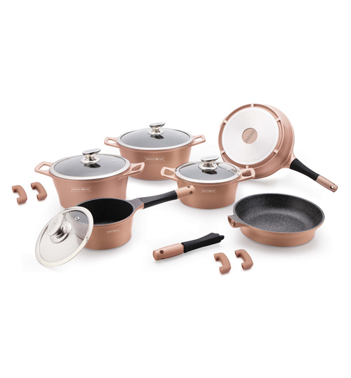 Σετ αντικολλητικά μαγειρικά σκεύη με επίστρωση μαρμάρου, 14 τεμαχίων, σε χάλκινο χρώμα, Royalty Line RL-ES1014M-COP